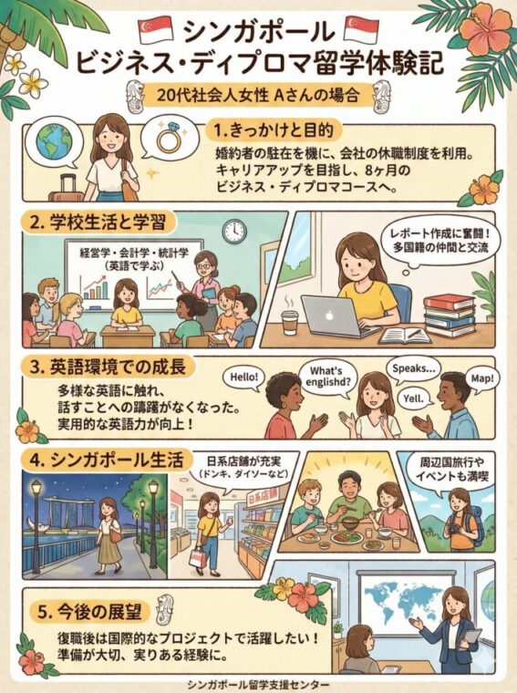 当初は英語コースを検討していましたが、シンガポール留学支援センターの方に専門分野を受講できるコースがあることを教えていただき変更しました。